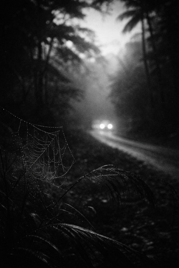 a car klaxoning to the empty road.